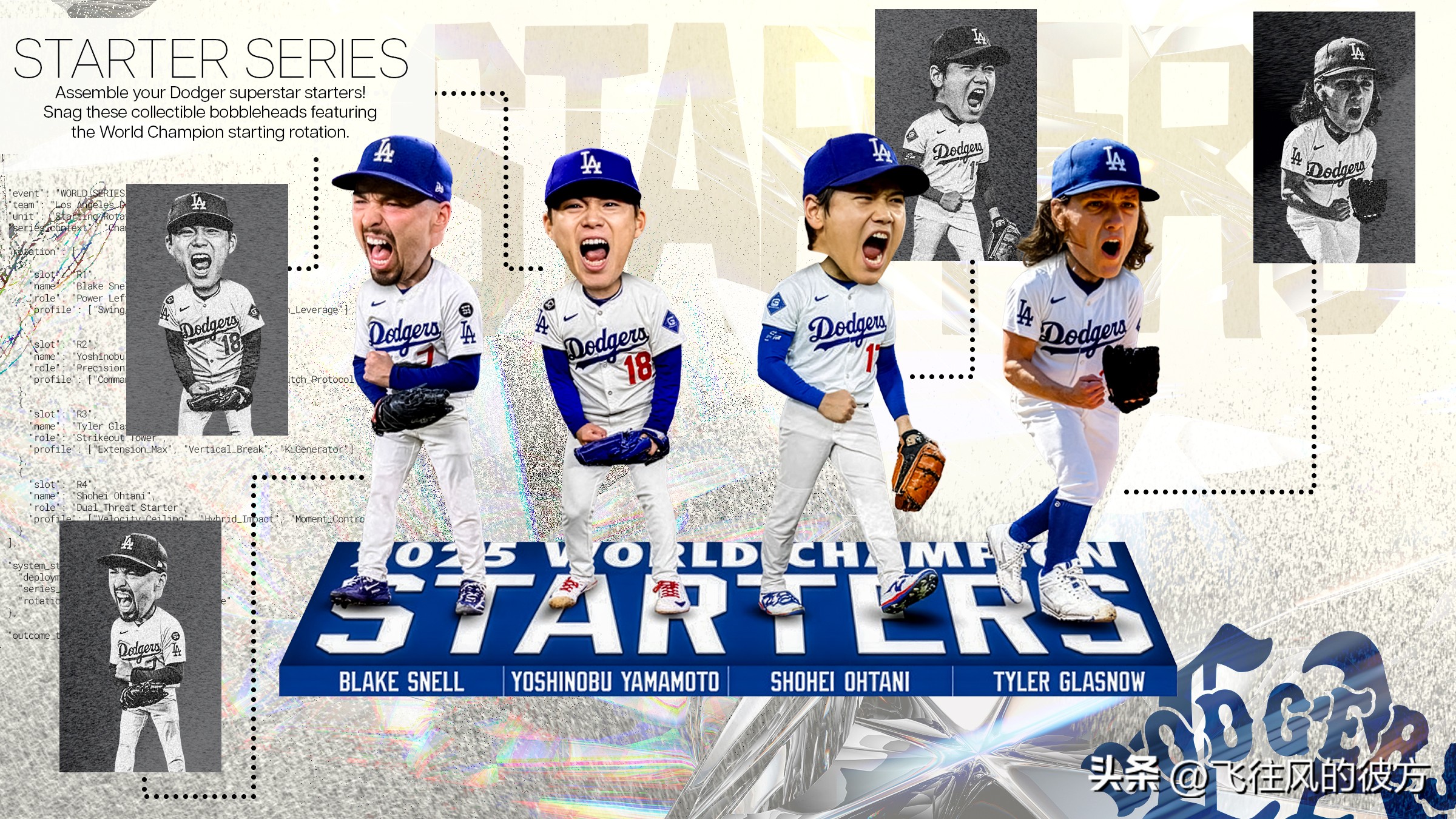 After releasing Shohei Ohtani bobbleheads twice in 2024 and four times in 2025, the Dodgers will host three related themed game days this year. The April 10 and July 8 designs are inspired by his legendary performance in Game 4 of the National League Championship Series, where he pitched six scoreless innings with ten strikeouts and hit three home runs in a single game. Additionally, the Dodgers have a starting pitcher bobblehead series across four days, featuring Shohei Ohtani, Yoshinobu Yamamoto, Blake Snell, and Tyler Glasnow bobbleheads.