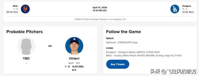 According to MLB official information, the Dodgers will begin a three-game homestand against the Mets tomorrow. The first game will be started by Justin Wrobleski, the second by Yoshinobu Yamamoto, and the final game (on Beijing time, the 16th) will feature Shohei Ohtani as the two-way starting pitcher. This will be Ohtani's return to pitching after a six-day rest.