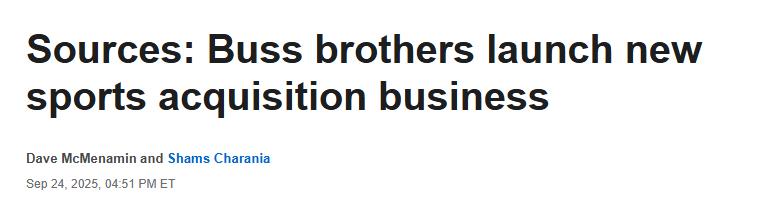 On September 25th Beijing time, as reported by Shams and McMenamin, sources revealed to ESPN that the Bass brothers are expanding their ventures beyond the Los Angeles Lakers into professional sports. Joey Bass, the Lakers’ alternate governor and VP of R&D, together with Jesse Bass, the assistant GM, will jointly establish a new firm named "Bass Sports Capital." This new investment entity aims to pursue acquisition opportunities and partnerships across the global sports industry.