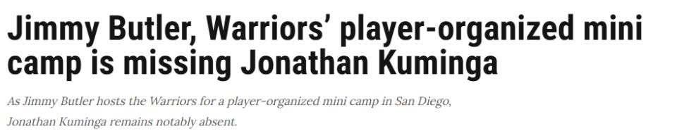 Shams stated on the program: "Jimmy Butler definitely arranged this team event in San Diego this week, the mini training camp. It was the first time Curry, Green, and Butler all took part fully in a single team event. However, one player was missing —He is the only absence on the Warriors’ potential roster list, restricted free agent Jonathan Kuminga.From what I understand, he did not attend this team event and cohesion camp in San Diego. Negotiations remain at an impasse... and Kuminga also missed the first team-related activity held by the Warriors players today.”