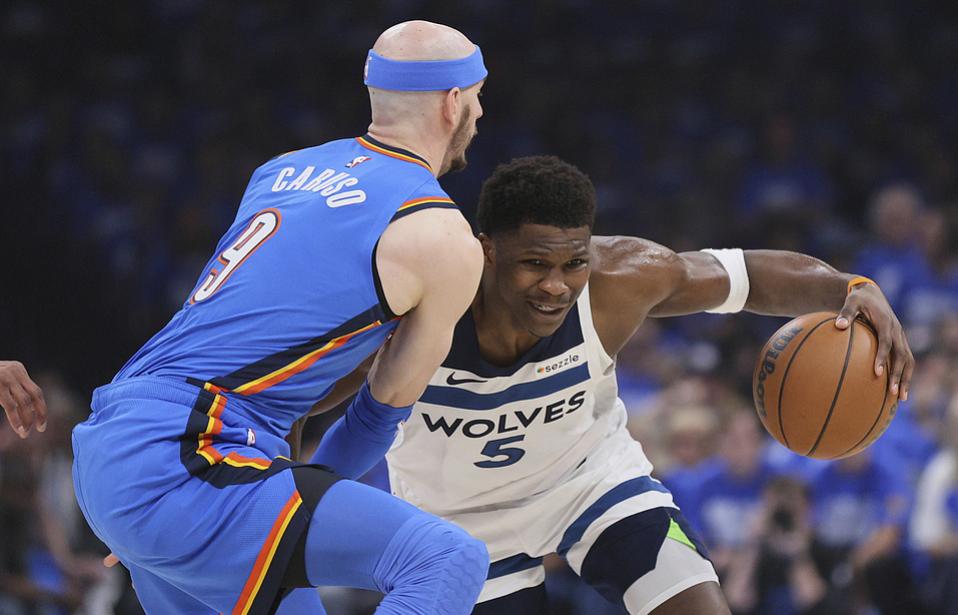 In the Western Conference Finals, Edwards once again struggled against double teams. The Thunder’s defensive approach mirrored that of the Mavericks in ’24: collapsing the paint, blocking Edwards’ driving lanes, and applying strong-side double teams while leaving the weak side open for threes.