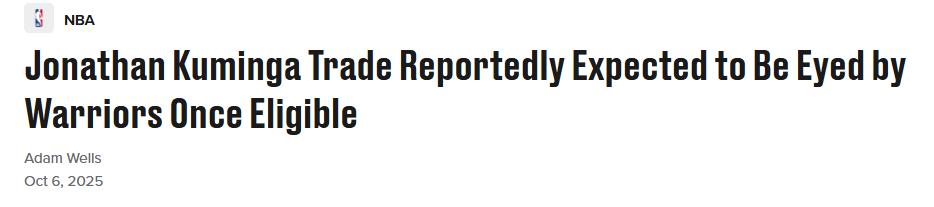 On October 6 Beijing time, according to NBA insider Jake Fischer, once Kuminga becomes eligible for trade on January 16 next year (Beijing time), the Warriors will put him on the trade market. A divide has already formed between both sides.