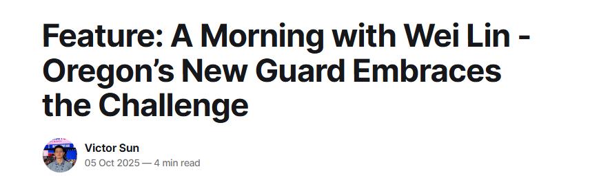 On October 6th Beijing time, NBA reporter Victor Sun wrote an update on Lin Wei’s situation at the University of Oregon. Below is his full report—