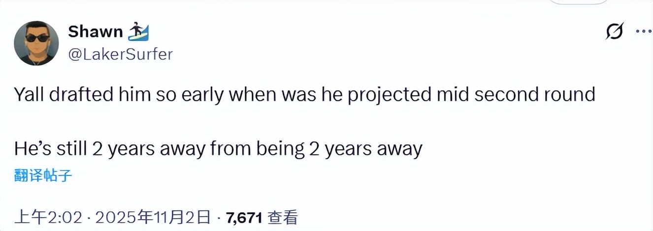 Fan Shawn wrote: "You guys picked him way too early — it was expected he’d go mid-second round. At his current level, even waiting two more years, it would still take another two years before he can really play."