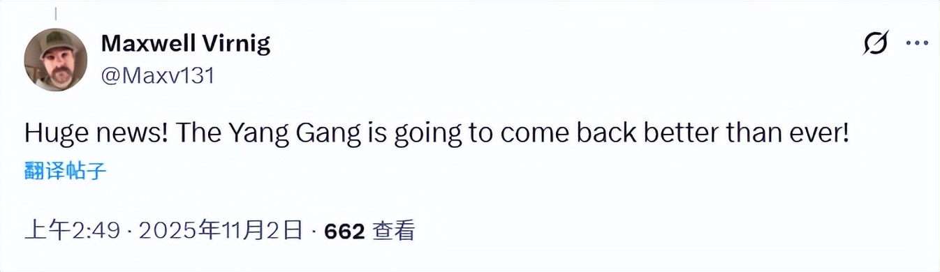 Fan Maxwell Virnig exclaimed: "Fantastic news! The ‘Yang Squad’ will definitely return stronger and better than ever!"