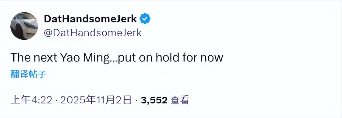 Fan DatHandsomeJerk stated: "The next Yao Ming... can only be put on hold for now."