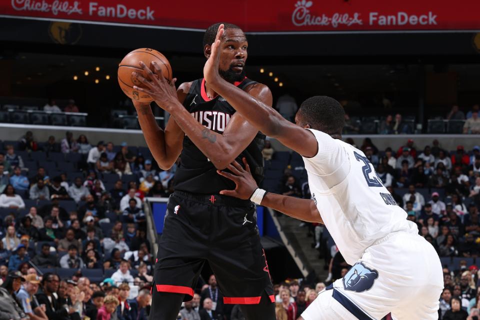 On November 6th Beijing time, the Rockets beat the Grizzlies 124-109 away, earning their fifth straight victory and giving the Grizzlies their fourth consecutive defeat. Amen Thompson shone with 28 points, 10 boards, and 7 assists, and Sengun added 20 points, 16 rebounds, and 7 assists. Durant had an off night, shooting 5-for-18 for 11 points. Seven Rockets players reached double digits in scoring. At halftime, they held a 9-point lead and widened the gap in the second half to secure the win. Morant scored 17 points on 6 of 19 shooting.
