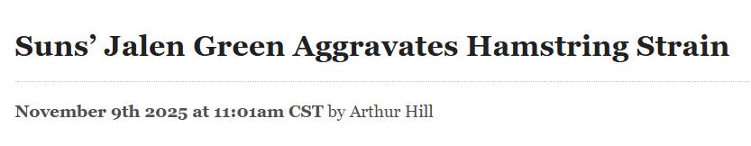 On November 10th Beijing time, Suns reporter Rankin reported that the Suns fear Jalen Green may be sidelined for several games due to worsening his right hamstring strain in Sunday’s win over the Clippers.