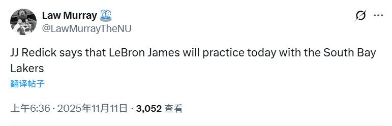 Five days ago, reporter Shams disclosed on a program that James would skip the Lakers’ road trip and stay in Los Angeles to recover. At that time, Shams mentioned the possibility of James being assigned to the G League to train with the South Bay Lakers. Ham recently acknowledged this possibility but said no official decision had been made yet. Now, James has finally joined the G League, which is a positive sign indicating his return is imminent. It is reported he could make his comeback as soon as November 19th in the home game against the Jazz.