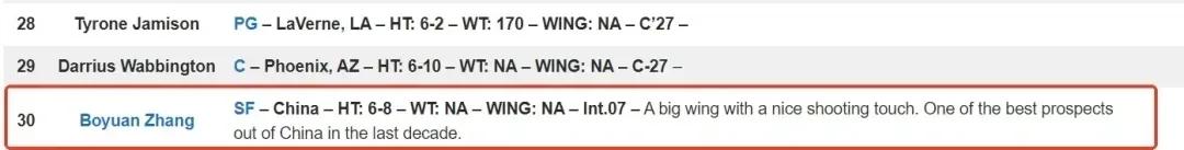 Previously, the NBA Draft Room, a US draft media outlet, predicted Zhang Boyuan would be selected 30th overall in the first round of the 2028 draft.This media outlet also predicted Yang Hansen would be picked 22nd in the first round this summer, and Yang was eventually selected 16th by the Trail Blazers, making them the US draft media closest to the actual results.