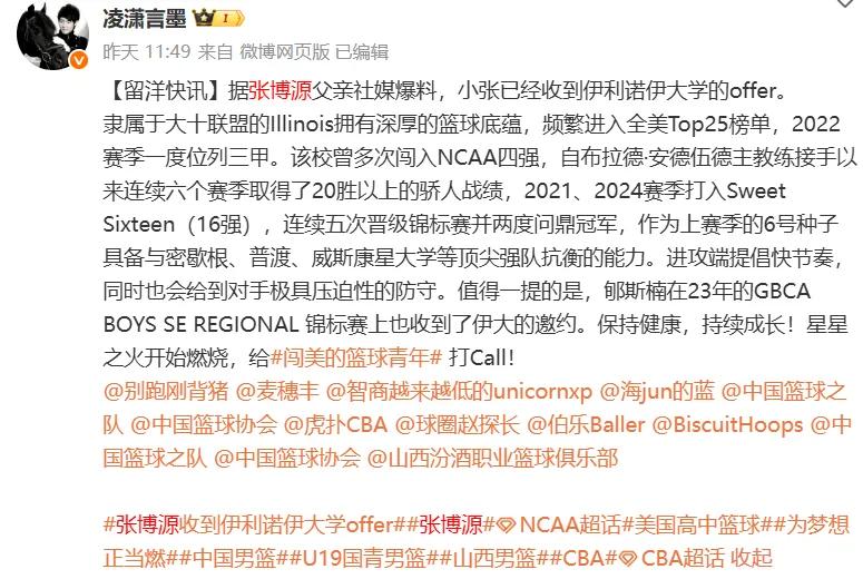 As revealed by Zhang Boyuan's father,Zhang Boyuan has secured an offer from the University of Illinois.