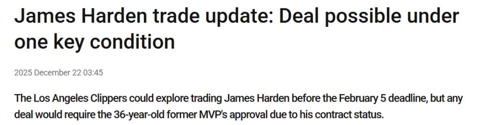 Recently, reporter Stein revealed thatHarden is increasingly mentioned by opposing team executives as a potential trade asset.The NBA trade deadline for this season falls on February 6th, Beijing time.