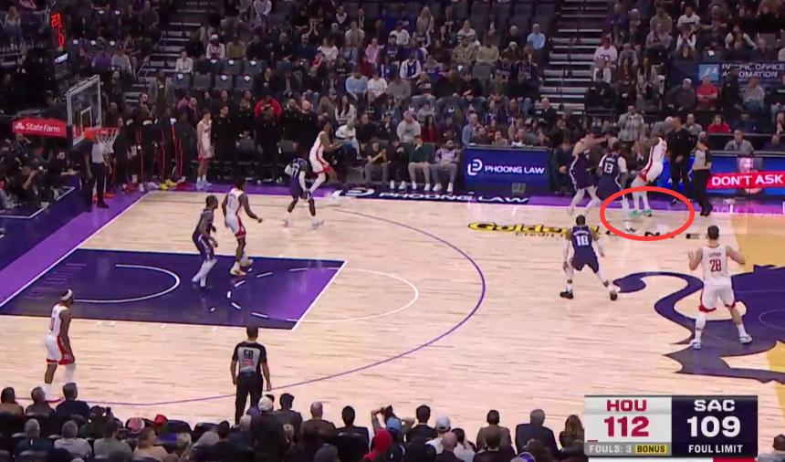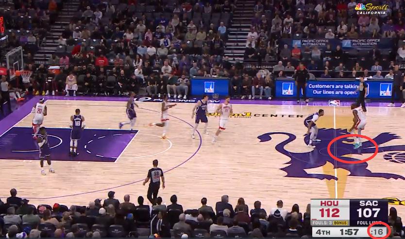 The third missed call took place with 28.4 seconds left in the fourth quarter. Durant moved his pivot foot while creating space, which should have been called traveling. This traveling violation was missed, benefiting the Rockets and hurting the Kings.