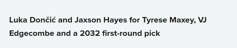 Sixers receive: Doncic, Hayes