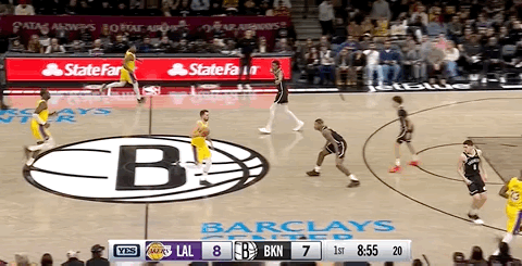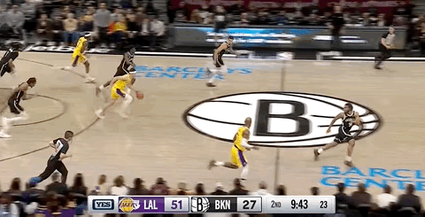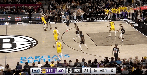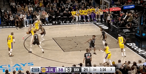 LeBron made a steal and fast break; Ayton finished with an easy dunk, prompting the Nets to call a timeout early.
