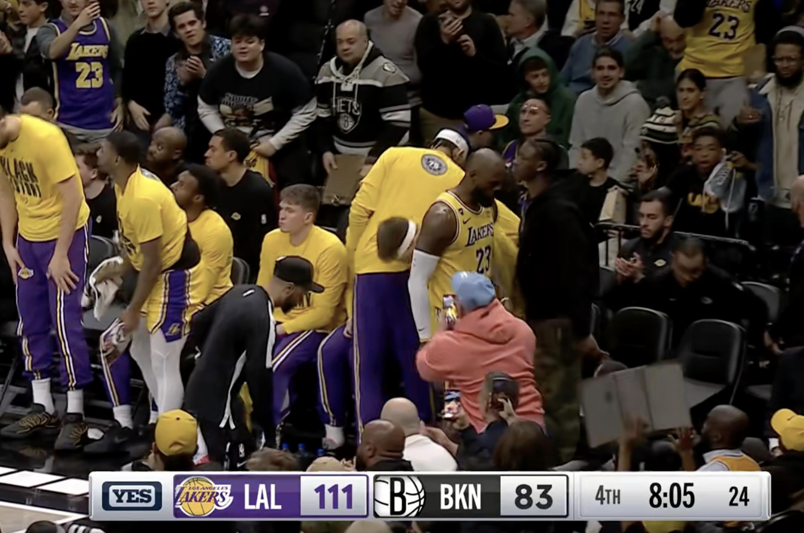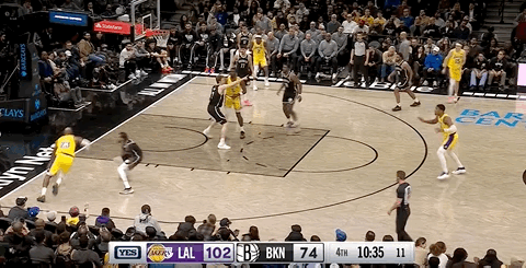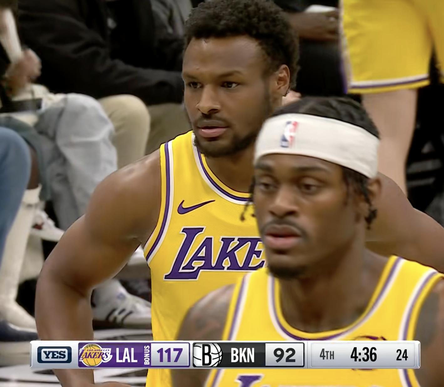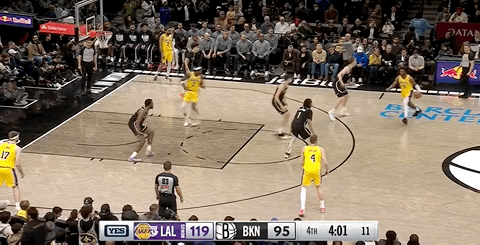Then the Nets went on a 17-10 mini-run, prompting the Lakers to call a timeout. James returned and assisted LaRavia for a three-pointer.