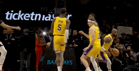 The Lakers entered the fourth quarter leading 100-74. James threw a quarterback-style long pass, which Vanderbiao dunked.
