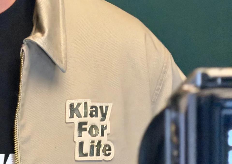 Thompson wore a custom “Klay For Life” jacket throughout the event, smiling broadly.