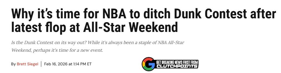 On February 17th Beijing time, ClutchPoints wrote about the All-Star Slam Dunk Contest, arguing that it’s time to discontinue the event. They further recommended that the NBA introduce a 1v1 duel competition. Here is the detailed breakdown—