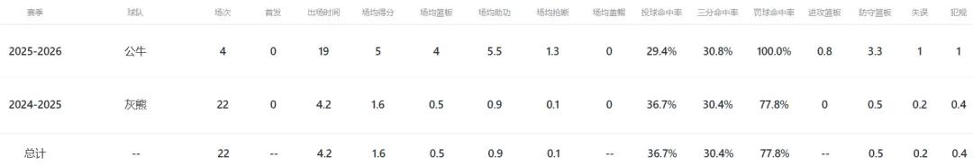 This guy has played outstandingly in recent matches; so far this season, he has participated in four regular games for the Bulls, averaging 19 minutes, 5 points, 4 rebounds, 5.5 assists, and 1.3 steals, with shooting splits of 29.4%, 30.8%, and 100%.