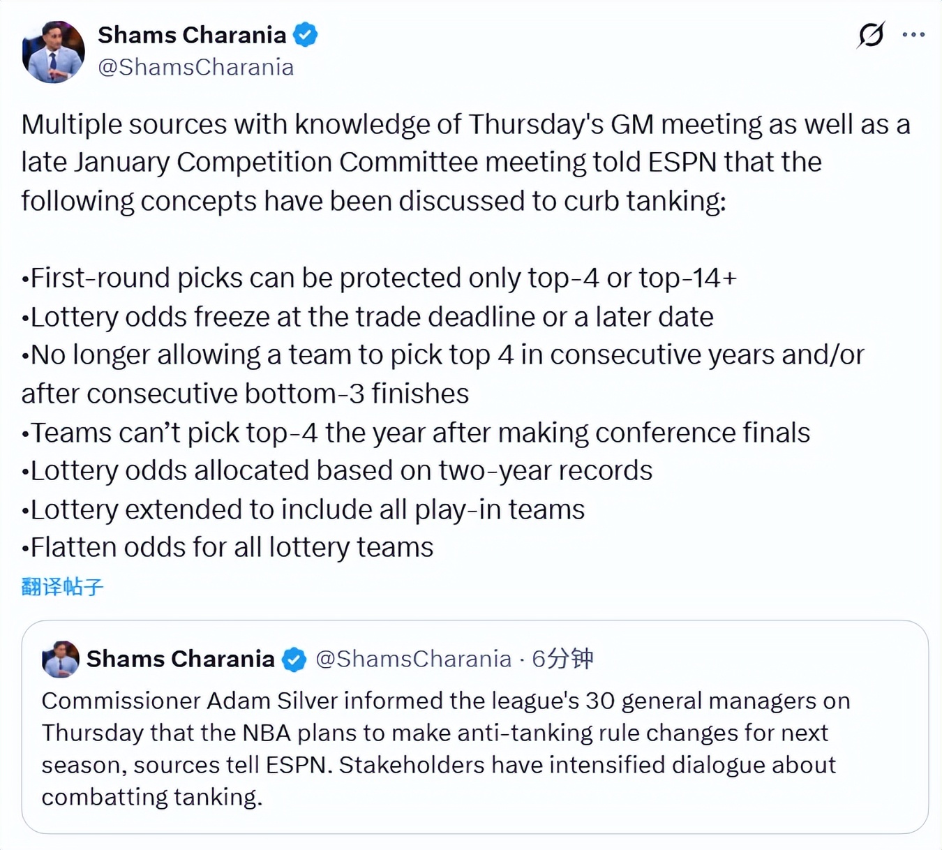 Multiple sources familiar with the general managers’ meeting and the late January competition committee meeting told ESPN that the current anti-tanking proposals include the following—