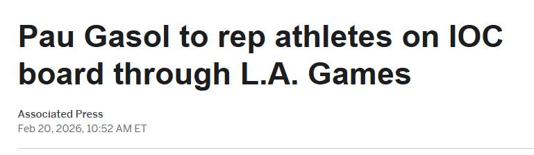 On February 21st Beijing time, ESPN reported that two-time NBA champion Pau Gasol was elected by Olympic athletes today to serve on the International Olympic Committee (IOC) Executive Board, with a tenure lasting until the 2028 Los Angeles Summer Games.
