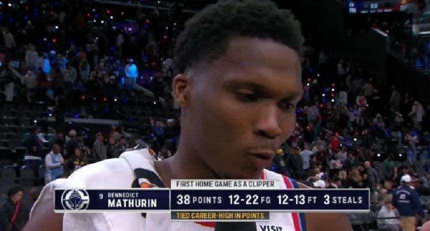 Simply put, Mathurin is currently the Clippers' second-best offensive weapon after Leonard; his arrival has helped the team secure a stable play-in spot, currently holding a 27-29 record, ninth in the Western Conference, five wins ahead of the 11th place Grizzlies.