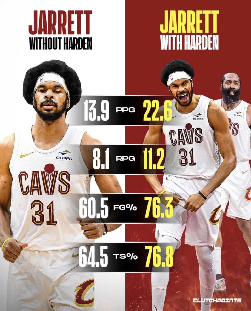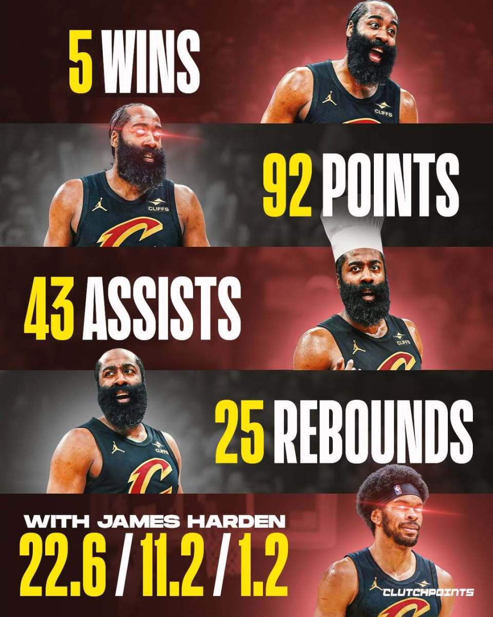 On February 22nd Beijing time, US media clutchpoints posted a graphic reflecting on Harden's influence after joining the Cavaliers, with the caption —