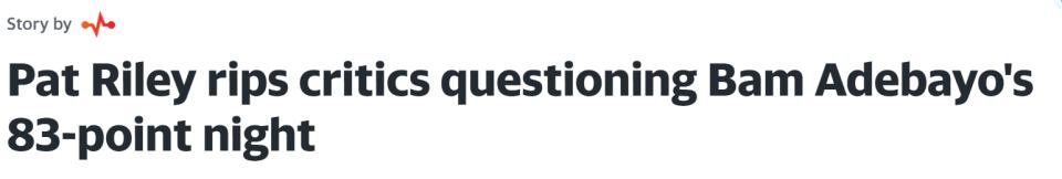 On March 15, after center Adebayo scored 83 points and faced criticism, Heat president Pat Riley also stepped forward to defend him.