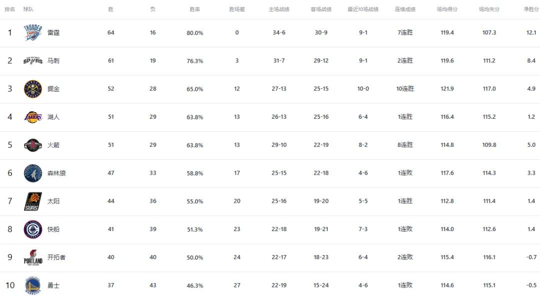 Currently, the Lakers are ranked fourth in the West with a 51-29 record, tied with the fifth-place Rockets, trailing the third-place Nuggets by one win.with two remaining regular-season games both at home, against the Suns and Jazz respectively, hoping to finish with a perfect record to warm up for the playoffs.