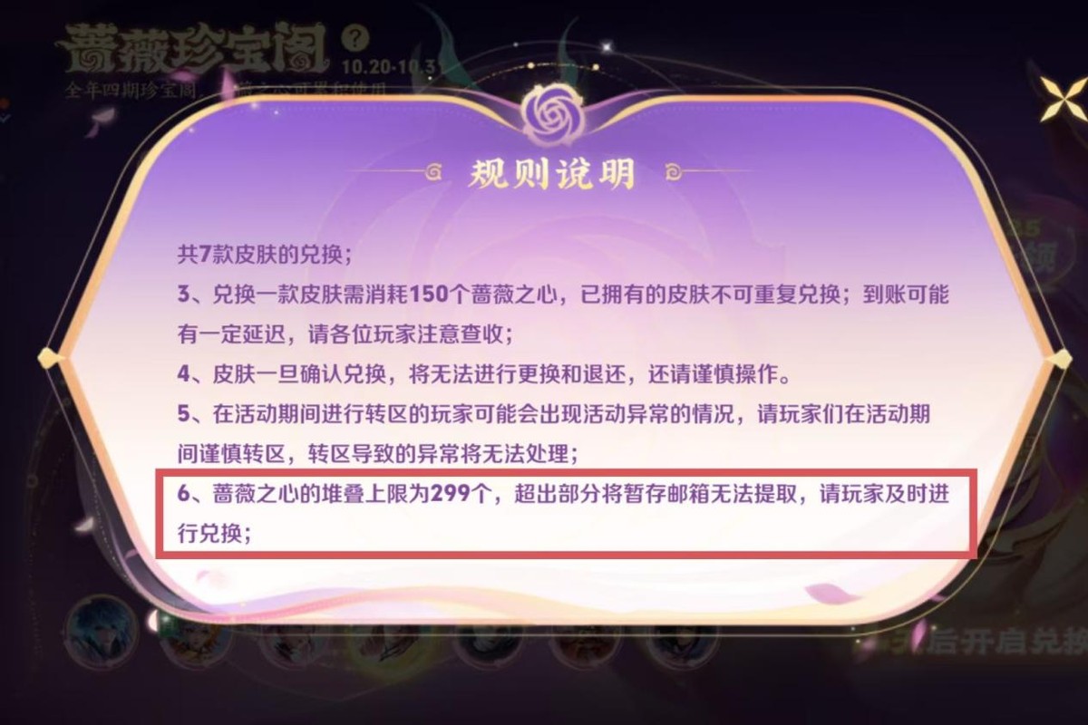 Of course, if none of the above skins appeal to you, you can hold off on redeeming and keep your Rose Hearts. This item lasts long and accumulates over time; it won’t be cleared when the Treasure Pavilion closes. The Pavilion opens four times a year, so you can redeem when you need to, with a maximum of 299 hearts stored. The key point is that “Way of All Things” was added during this year’s Spring Festival and has been available for some time. The next skin addition’s timing is unknown, so if you don’t have a desired skin now, it’s better to wait for the new one before deciding.