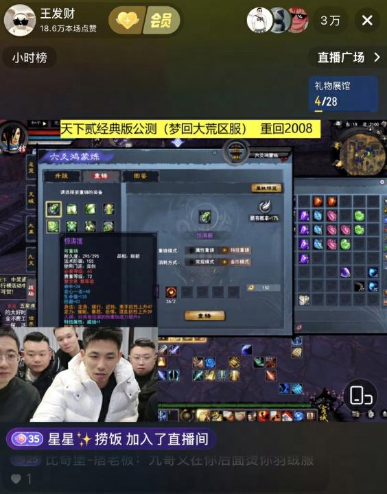 Moreover, the game attracts a huge number of top players. It’s not just filled with wealthy bosses; many top streamers have also settled in. For example, MMO streaming giants like FuKua and Wang Facai have joined "Tianxia 2 Classic Edition," starting an equipment synthesis race that quickly drove up the in-game market prices. Recently, Xu Xu Baobao also entered the game to test the waters.