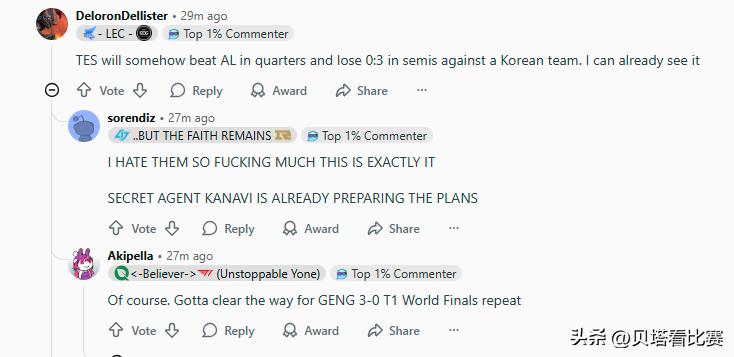 - TES will beat AL in the quarterfinals, then get 0-3’d by a Korean team in the semifinals. I’ve already seen it coming.