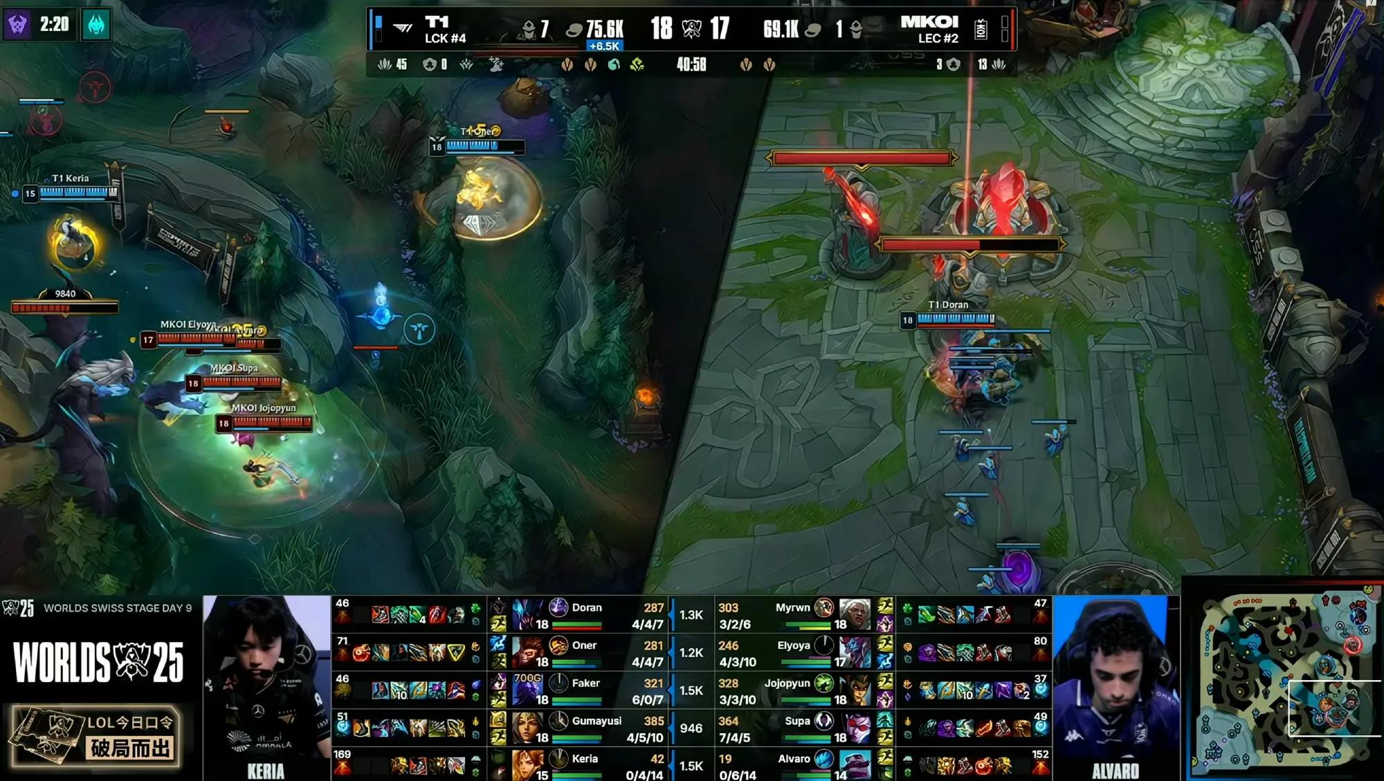 In contrast, T1’s mid-laner Faker impressed all players. As a veteran with ten years of experience, he became the backbone in the match against MKOI. In the first game with Kassadin, he abandoned the traditional build and bought Shadowflame as his second item. Despite early disadvantages, he led his team to a comeback in mid-game team fights. The same happened in the second game with Ryze. Had the mid-laner been anyone else, MKOI might have won. It felt like T1 was testing Faker’s resilience. Although Bin’s mechanics were solid, he did make a crucial mistake mid-lane during one fight.