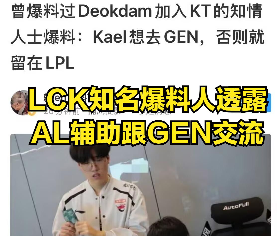 Since the "world's strongest team GEN" collapsed at the World Championship, GEN's mid-laner Chovy has been thoroughly discredited. Many LOL viewers guess that GEN will surely reduce its spending next year. GEN builds a star-studded roster every year but keeps embarrassing itself on the world stage. However, something unexpected happened: recently, a well-known LCK insider revealed that GEN is negotiating with AL’s core support player Kael during the transfer period, aiming to swap support Duro with Kael. (This insider previously revealed Deokdam joining KT)