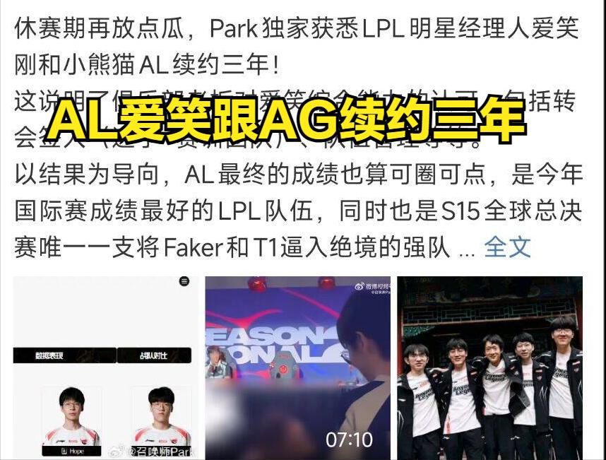 Although AL’s jungler and support haven’t confirmed contract renewals, AL manager Aixiang recently revealed he has extended his contract with AG for three more years. This news upset many AL fans, who feel Aixiang is too boastful and has damaged AL’s public image. Some fans also worry Aixiang will stubbornly keep AD carry HOPE. (Aixiang once directly clashed with critics, claiming HOPE is the best-fitting AD for AL and that JKL and ELK can’t compare to him)