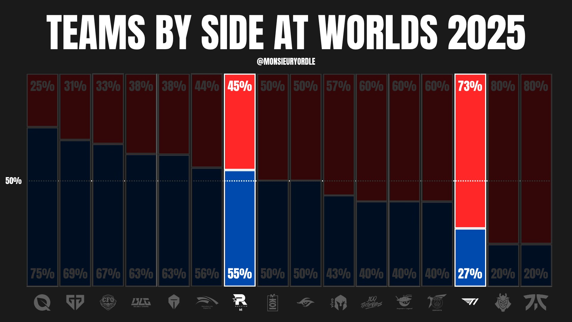 Of course, these patterns have no real basis and should be taken as fun trivia. But judging by the players’ skill levels, T1’s chances of winning are indeed higher. KT’s bottom lane duo are rookie players in their first Worlds, so T1 has the experience advantage. However, PerfecT is very aggressive; in the semifinals, he solo killed Kiin in lane, so Doran might not have an edge.
