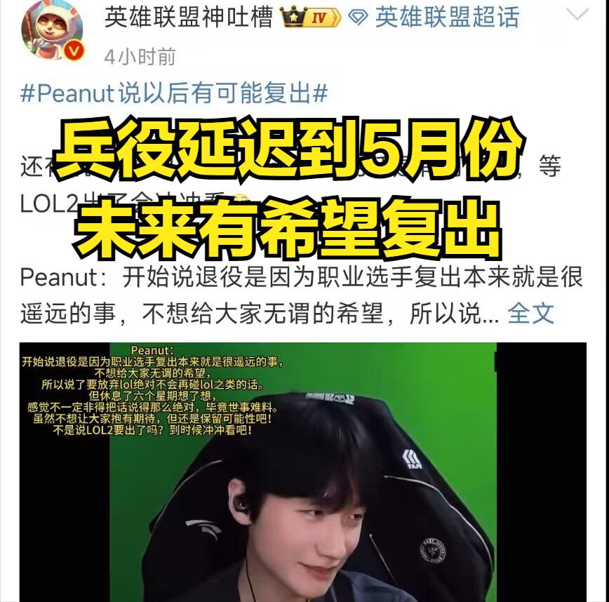 Peanut stated that he was originally scheduled to begin military service in March next year, but due to certain special reasons, his service has been delayed until May. If further special circumstances arise, he might not have to serve at all. This statement brought joy to many Peanut fans because if he had to serve, it could have meant the end of his professional career. Without military service, Peanut is very likely to continue competing, especially given his strong performance in the league.