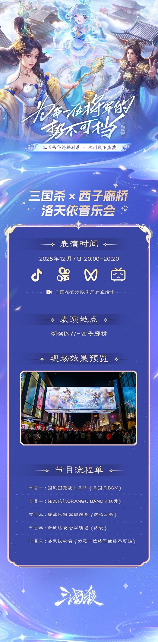 On December 6th, the melodies of the Three Kingdoms will echo by West Lake! Led by Luo Tianyi’s vocals and supported by the rock band ORANGE BAND! Clear voices blend with the sparkling lake and distant mountain hues, perfectly mixing the passion of the Three Kingdoms with Jiangnan’s poetic atmosphere. Experience an immersive cross-dimensional music feast, where every snapshot captures the scenic lake vibe perfectly!