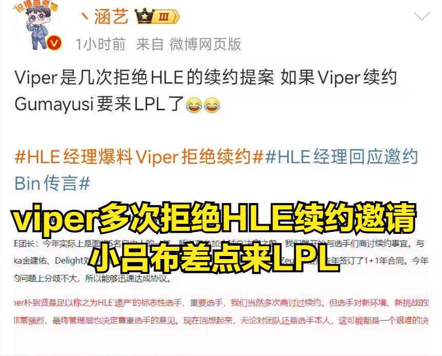 During the transfer period, Viper’s agent revealed in an interview that whichever team signed mid laner LeftHand, Viper would join that team. Moreover, many insiders reported that both Viper and Bin took pay cuts to renew with BLG. HLE’s team also stated in interviews that they had multiple renewal negotiations with Viper, but he rejected all offers. Many fans joked that if Viper had renewed with HLE, then Xiaolubu might have joined an LPL team.