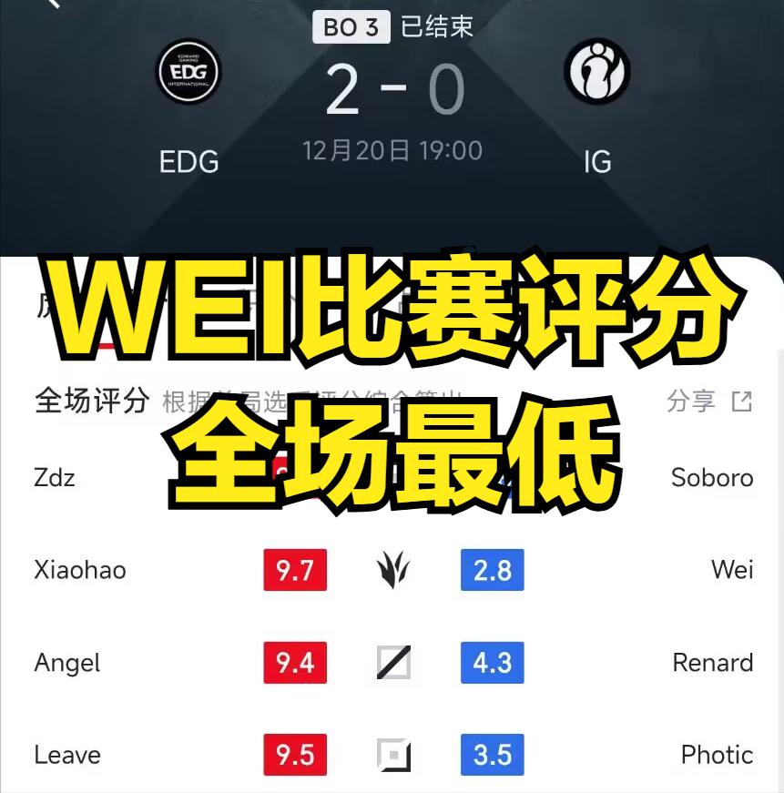 After IG’s heavy loss to EDG, IG’s jungler WEI was heavily criticized. In this BO3 series, the biggest skill gap was in the jungle role, with IG’s WEI consistently outmatched by EDG’s jungler xiaohao. As a result, WEI received a low match rating of only 2.8. Some viewers think that without top laner TheShy and mid-laner ROOKIE, WEI has become a “shadow of his former self” in the jungle. (Do you think WEI’s low rating is justified?)