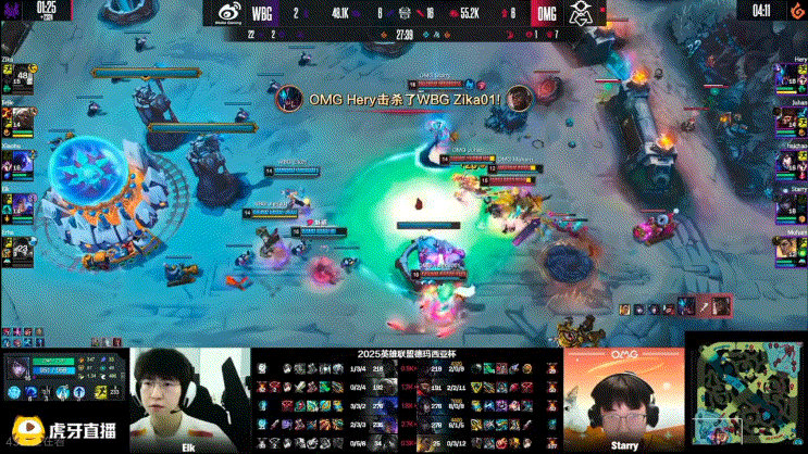 The last BO3 was an all-Chinese matchup between WBG and OMG. Among the current all-Chinese teams, WBG is considered the strongest on paper. But against OMG, WBG’s players performed surprisingly poorly and were shut out. Bottom laner ELK was completely outmatched by Starry, losing lane kills in both games and getting crushed in mid-to-late game team fights.