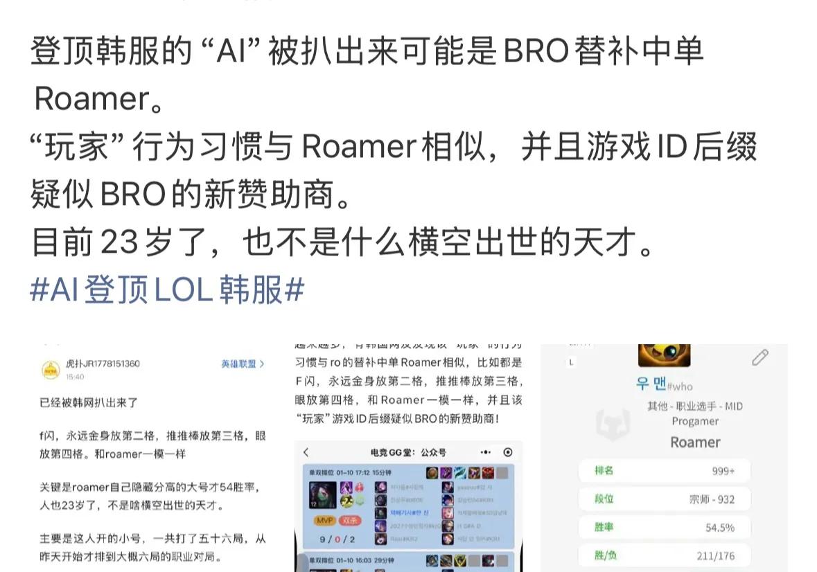 Fans following the matches might know that recently, a Korean server account with a 92% win rate and only four losses climbed to the top rank. Many insiders speculated whether it was Elon Musk’s AI account. Indeed, the gameplay in the replays showed extremely precise movements and easy prediction of enemy skills, almost like G’s style. Since the account wasn’t banned in Korea, it indicated no cheating was involved. At the time, everyone agreed it was likely Musk’s AI model entering the Korean server, as no ordinary player could maintain such a high win rate with intense ranked games. Later, some Korean insiders revealed a twist: the BRO mid laner Roamer owns that Korean server smurf account.