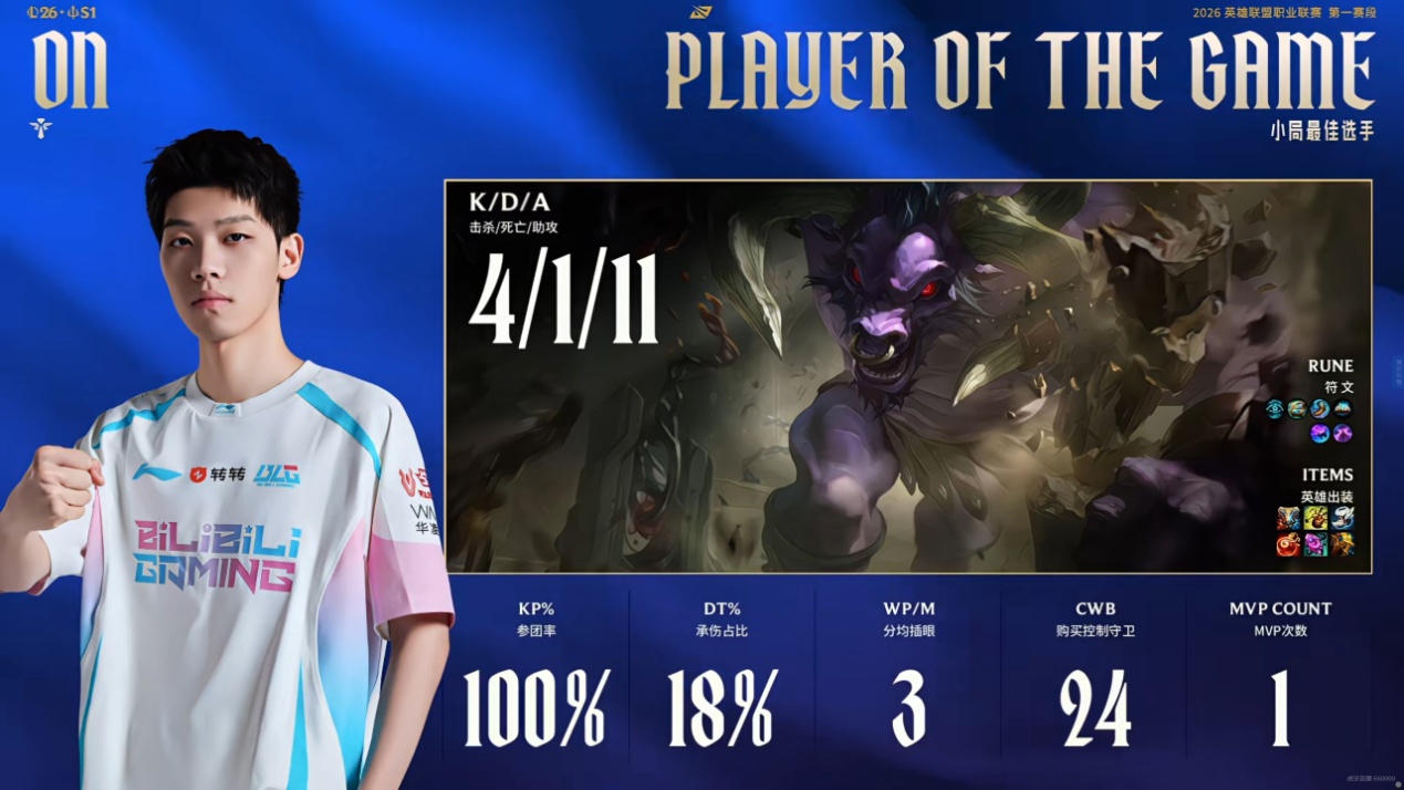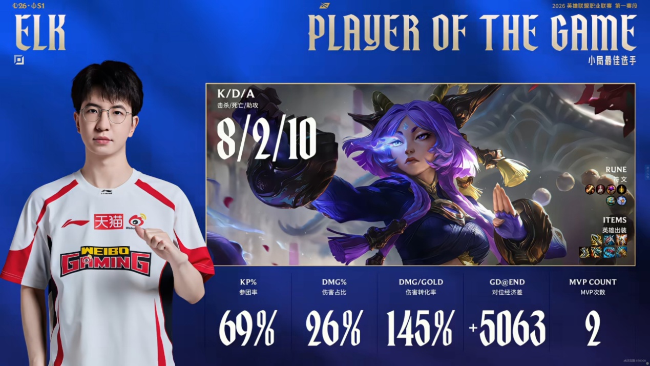 With the game slipping away, WBG secured Baron and the dragon soul, then easily closed out the match. The post-game MVP was awarded to Elk, delivering a heavy blow to BLG.