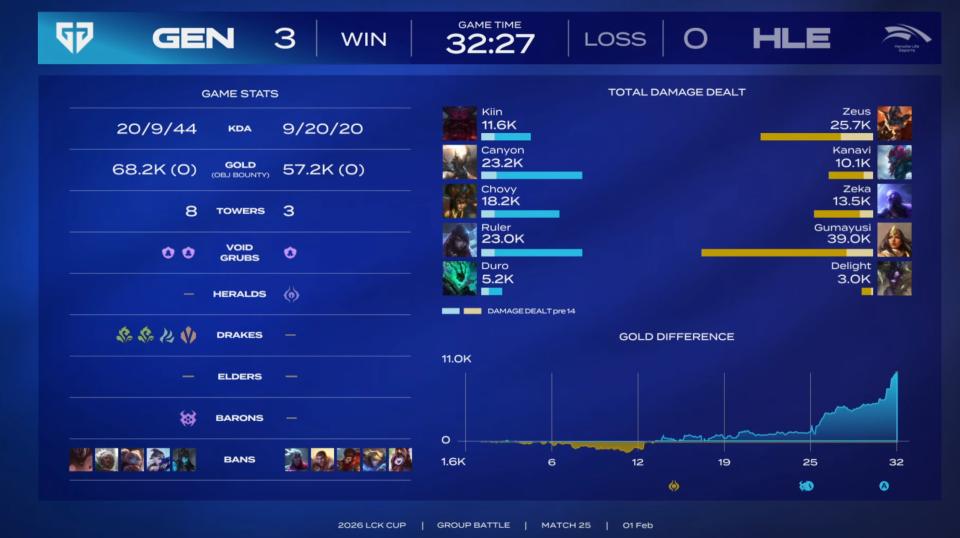 On the last day of the 2026 LCK Cup Super Week, HLE suffered a 0-3 sweep against GEN! Ending with an overall score of 5-9, they placed at the very bottom of the LCK region. This last-place finish caused their premature elimination. Remember, this is a 10-to-9 system, and they were the first team eliminated across all regions! Just a year ago, they were top contenders in the Vanguard tournament, but within one year, they’ve fallen apart! Now, despite forming the so-called Galaxy Battleship, they capsized and took the harshest beating — something many HLE fans never expected or could accept! Their next match won’t be until April, meaning the team will have a full two-month break, effectively forced into a hiatus!