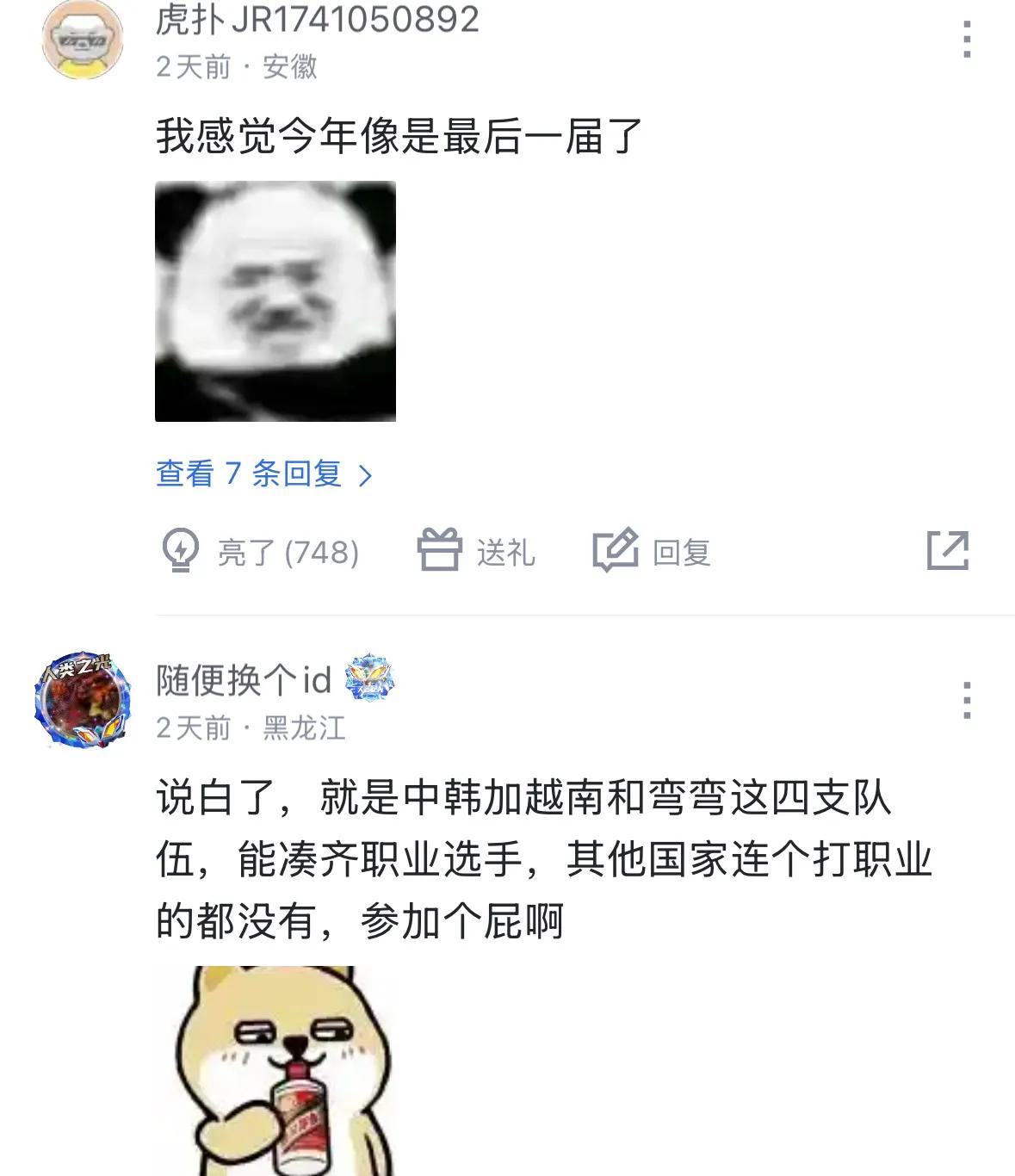 Who would have thought that a game as popular as League of Legends would see three countries already announcing their withdrawal? With everyone focusing on mobile esports, the League of Legends event probably had the least suspense. Only China's two teams might have a chance to compete against Korea, but their odds aren't very high. So it’s understandable that other countries chose to bow out to avoid embarrassment in the competition.