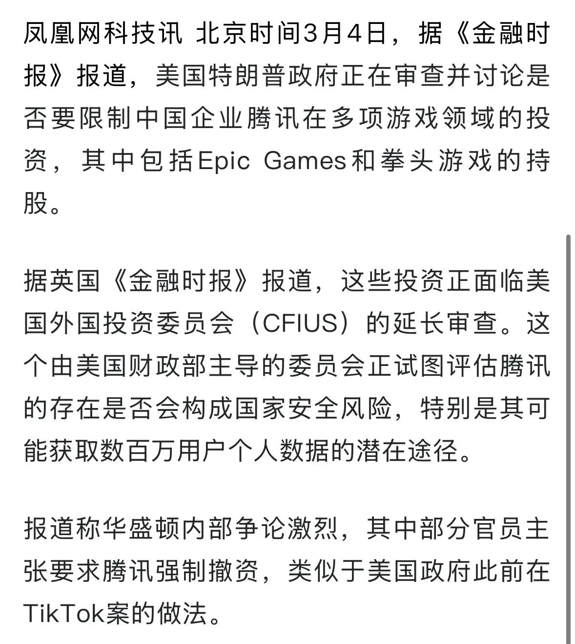 As many know, Tencent has invested in Riot Games, and recently, their joint esports operating company has been continuously expanding its capital, increasing by nearly 98%. While it was thought that the development of the esports industry wouldn't be heavily impacted, the recent review report has sparked widespread discussion among players online. According to reports, the U.S. is attempting to assess whether Tencent's presence constitutes a security risk, particularly its potential access to the personal data of millions of users. The aim is likely to restrict Tencent's investments in multiple gaming sectors, including its holdings in Epic Games and Riot Games. It is said that internal discussions are very intense, with some advocating for forcing Tencent to divest, similar to what happened with TikTok before.