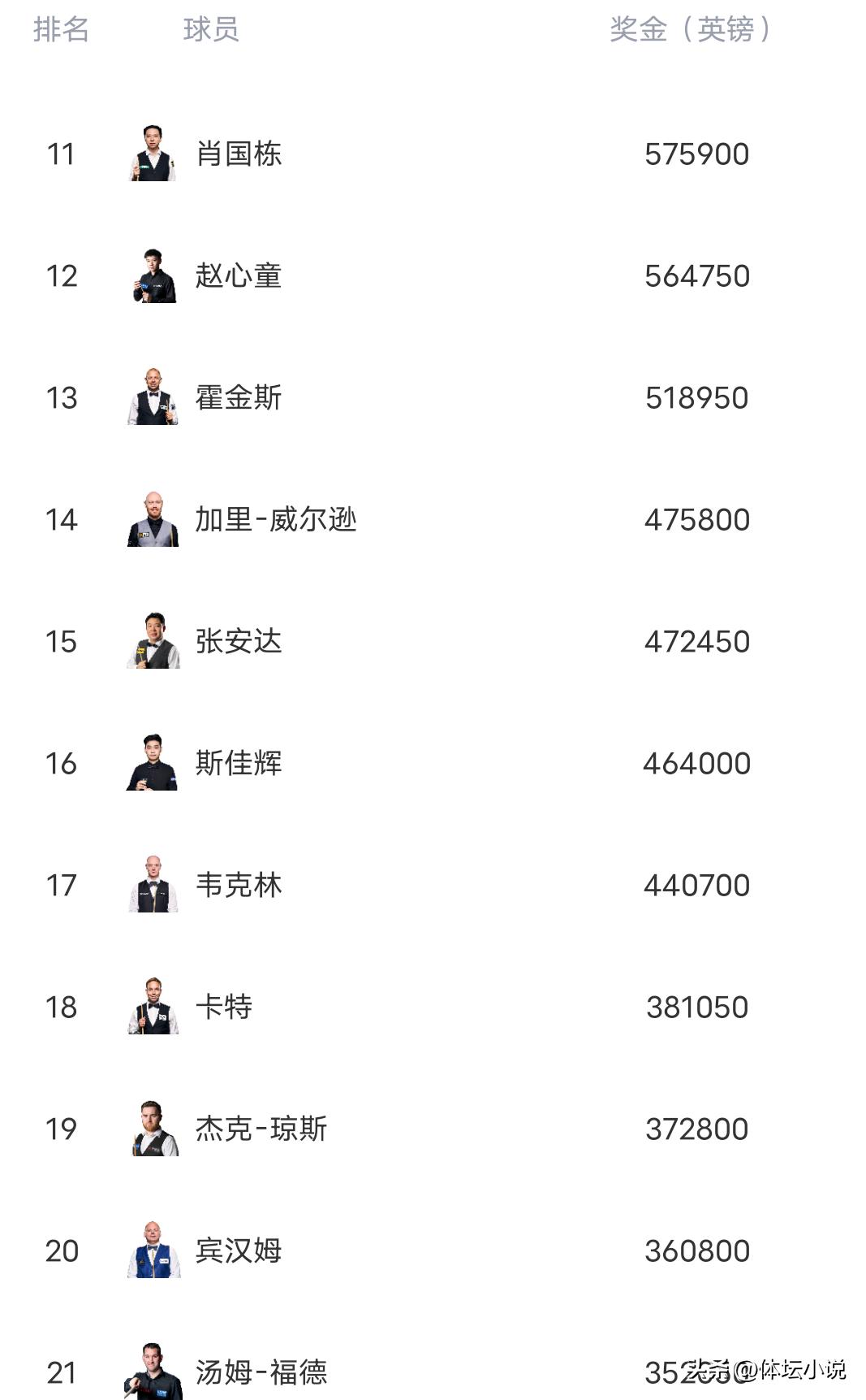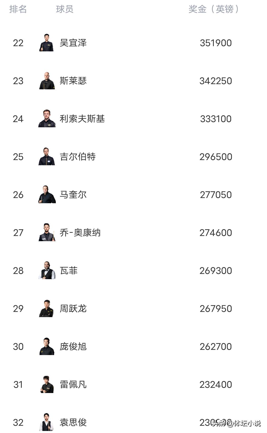 This season, Trump reached a ranking final for the first time. Although he did not win the title, it shows his form has returned, and he may continue to compete for more championships in the future. After earning £4.5k as runner-up, Trump remains firmly at the top of the rankings with a large lead. Ding Junhui, who did not participate in the Northern Ireland Open, was overtaken in the rankings. Mark Allen’s semifinal appearance pushed him past Ding, causing Ding to fall to eighth, but he remains the highest-ranked Chinese player!