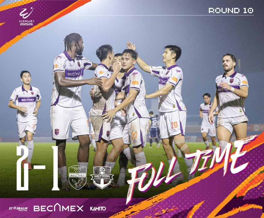 This victory not only secured three points but also demonstrated Becamex TP.HCM’s resilient spirit. Under the guidance of coach Đặng Trần Chỉnh, the Southeast team played one of their best matches this season, showing strong determination to overcome difficulties amid the intensifying relegation battle.