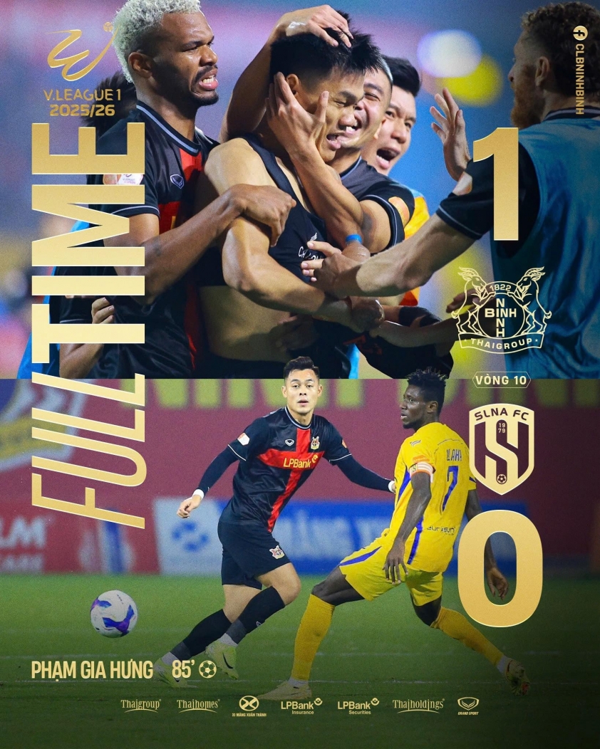 Ninh Bình secured a hard-fought 1-0 win over SLNA in the Round 10 match of the 2025/26 V-League, further solidifying their number one spot on the table.